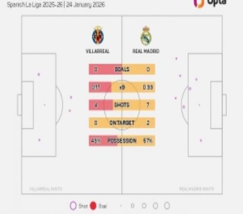体育播报1月25日宣 西甲第21轮比赛,姆巴佩破门,皇马客场1-0领先比利亚雷亚尔。据Opta统计,此役上半场比利亚雷...
